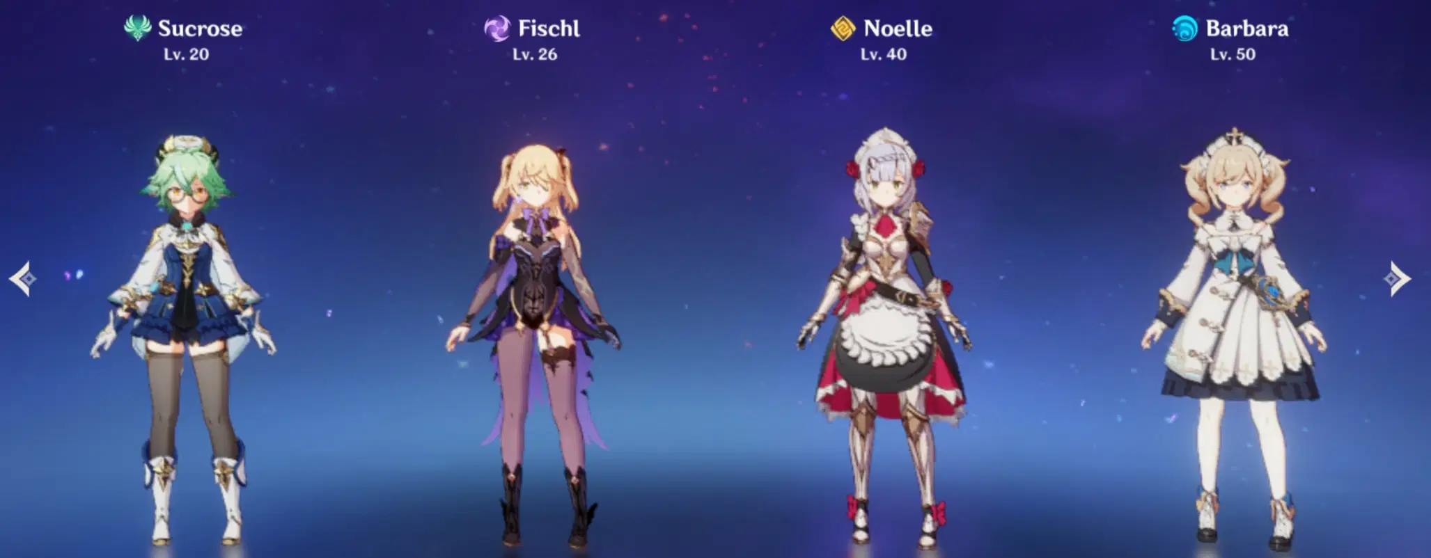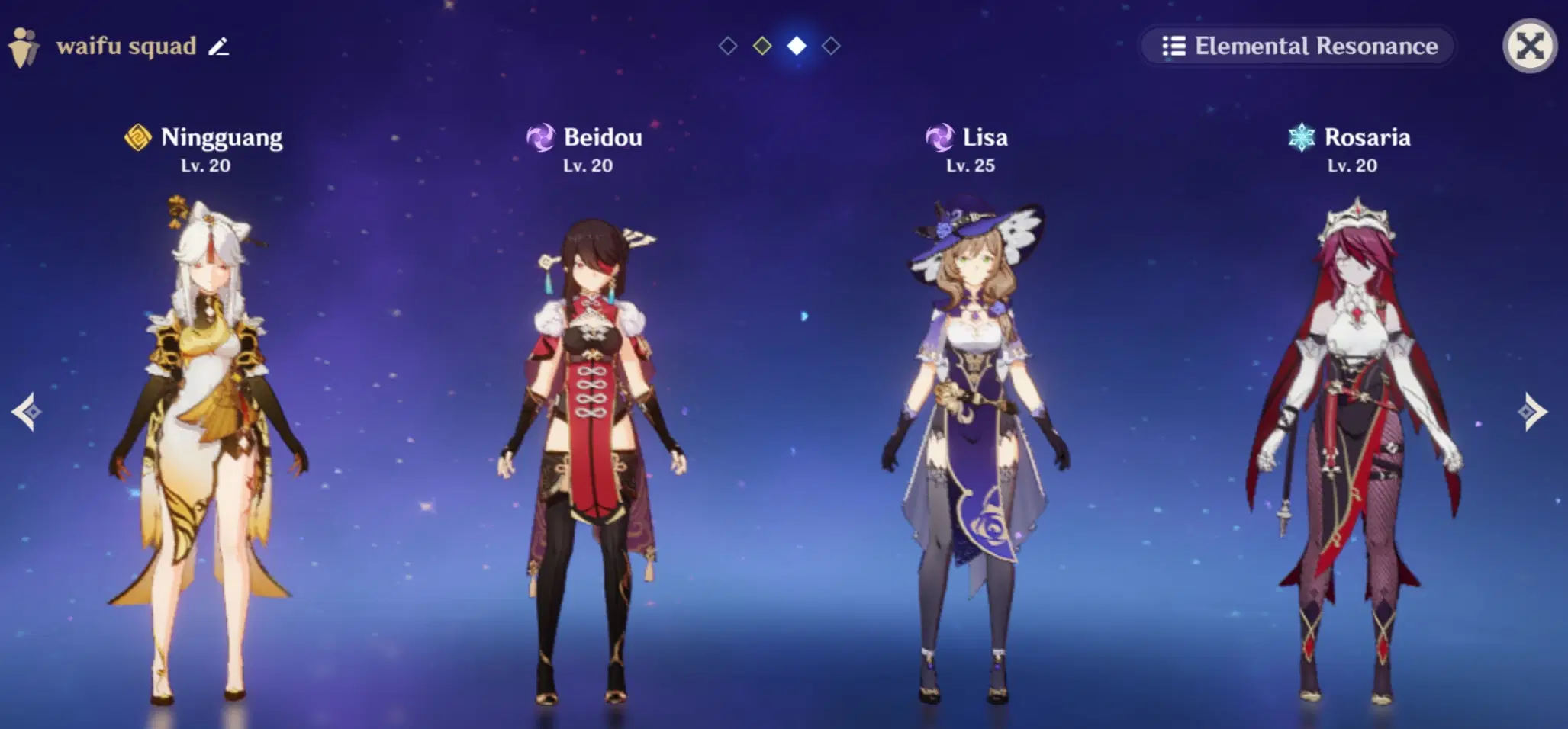 The Mondstadt girls - since Fischl is C6, she'll be the main dps in this team.