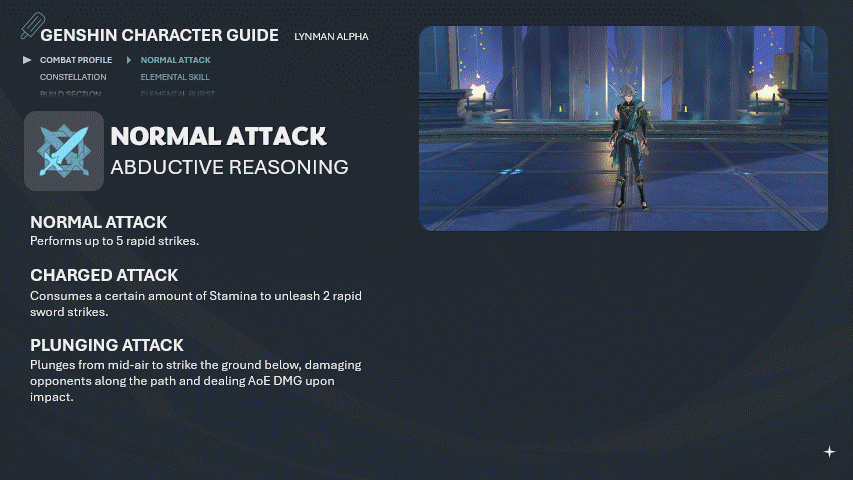 ➤ Alhaitham's Normal Attack can perform 5 rapid strikes that deal Physical DMG. It can be converted to Dendro DMG once he activates his Elemental Skill. Although his damage multipliers are quite decent, it is often recommended to level his Normal Attack up to Level 6 or 8 to boost his overall damage slightly.
