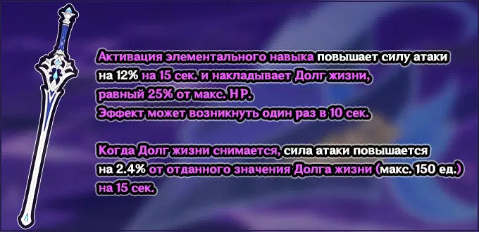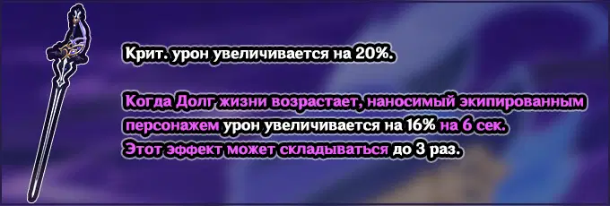 На данный момент это один из лучших одноручных мечей в игре. Его преимущество — пассивный навык, который увеличивает критический урон на 20%.
