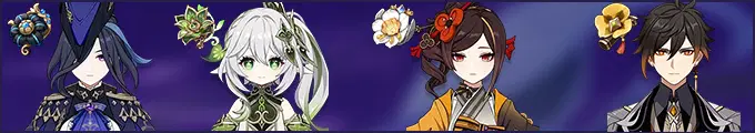 ✧ Чтобы сделать игру более комфортной, вы можете использовать комбинацию героев с георезонансом, щитами и дополнительным уроном по дальним целям. Чжун Ли обеспечит вас щитом, Чиори будет атаковать врагов на расстоянии, нанося дополнительный урон. Нахида будет создавать реакцию дендро и наносить дополнительный урон.