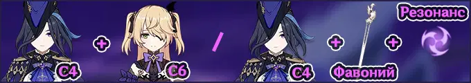 Фурина и Нахида значительно усиливают Клоринду. Если ваша Фишль уже достигла С6 созвездия, вы получаете ещё больший прирост к урону. Кроме того, Фурина не только предоставляет вам дополнительные усиления от фанфар, но и может лечить Клоринду, увеличивая её потенциал от долга жизни.