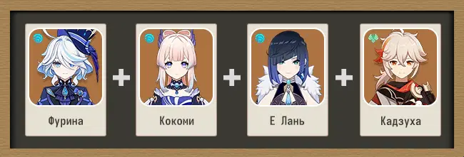 [Рекомендуемые отряды]: Отряд 1: Фурина+Невиллет+Кадзуха+Бай Чжу /Отряд 2: Фурина+Е Лань+Кадзуха+Кокоми