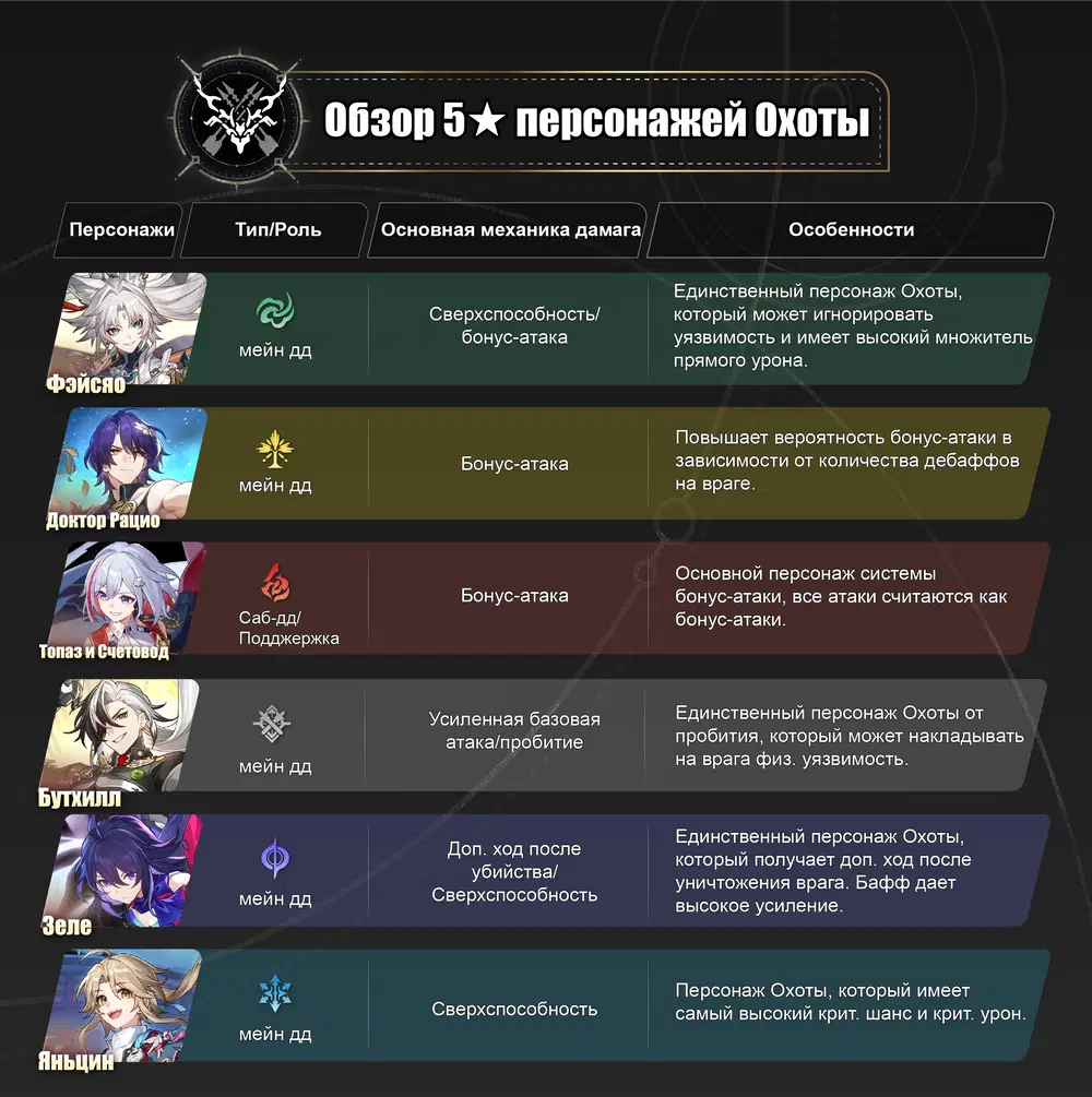 Обзор 5★ персонажей Охоты