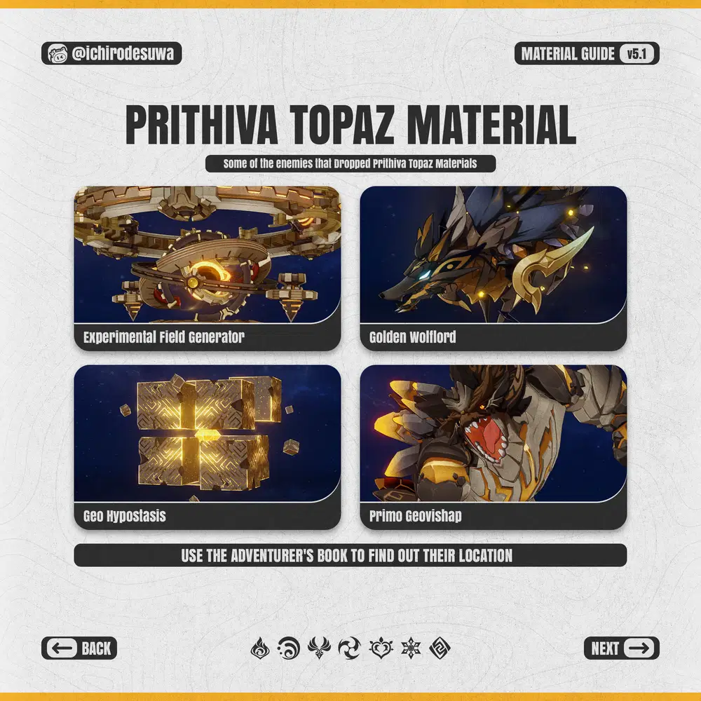 Some World Boss Enemies that Dropped Prithiva Topaz Materials.