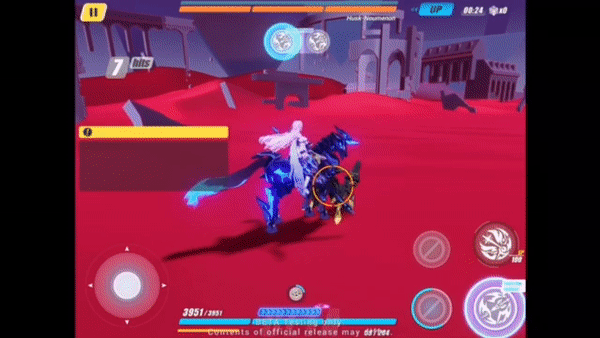 Under Knight Form, PE will first charge into an opponent dealing N*110% ATK of physical damage with N representing the number of hits (caps at 10)