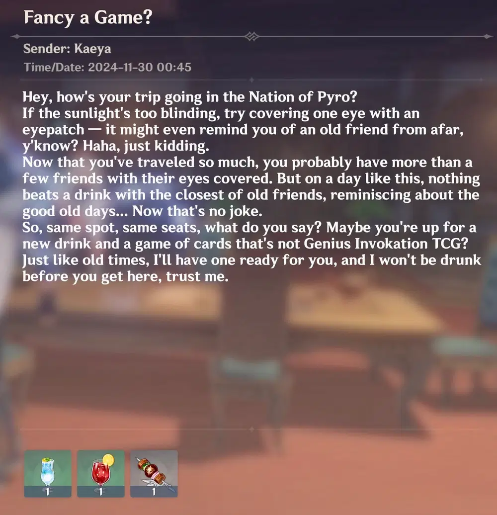 Diluc is drinking with him! And he made his specialty for Kaeya! ![]()