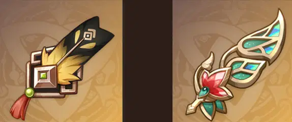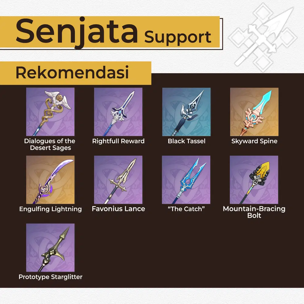 Catatan: Jika kalian tidak memiliki Senjata di atas, kalian dapat menggunakan opsi dengan Stat Sekunder ATK%. Namun kekurangannya adalah kalian harus berusaha mencari ratio Crit Rate dan Crit DMG yang bagus dari Artefak nanti.