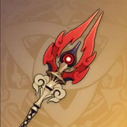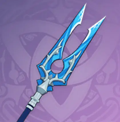 Senjata Bintang 4 dengan Stat Sekunder Energy Recharge yang bisa kalian dapatkan dengan menukarkan ikan hasil memancing. Senjata ini lebih cocok untuk type Zhongli DMG karena pasifnya yang dapat meningkatkan Burst DMG, namun karena Stat-nya yang ER menjadi kelemahan senjata ini yang menyebabkan DMG-nya kurang untuk Zhongli.