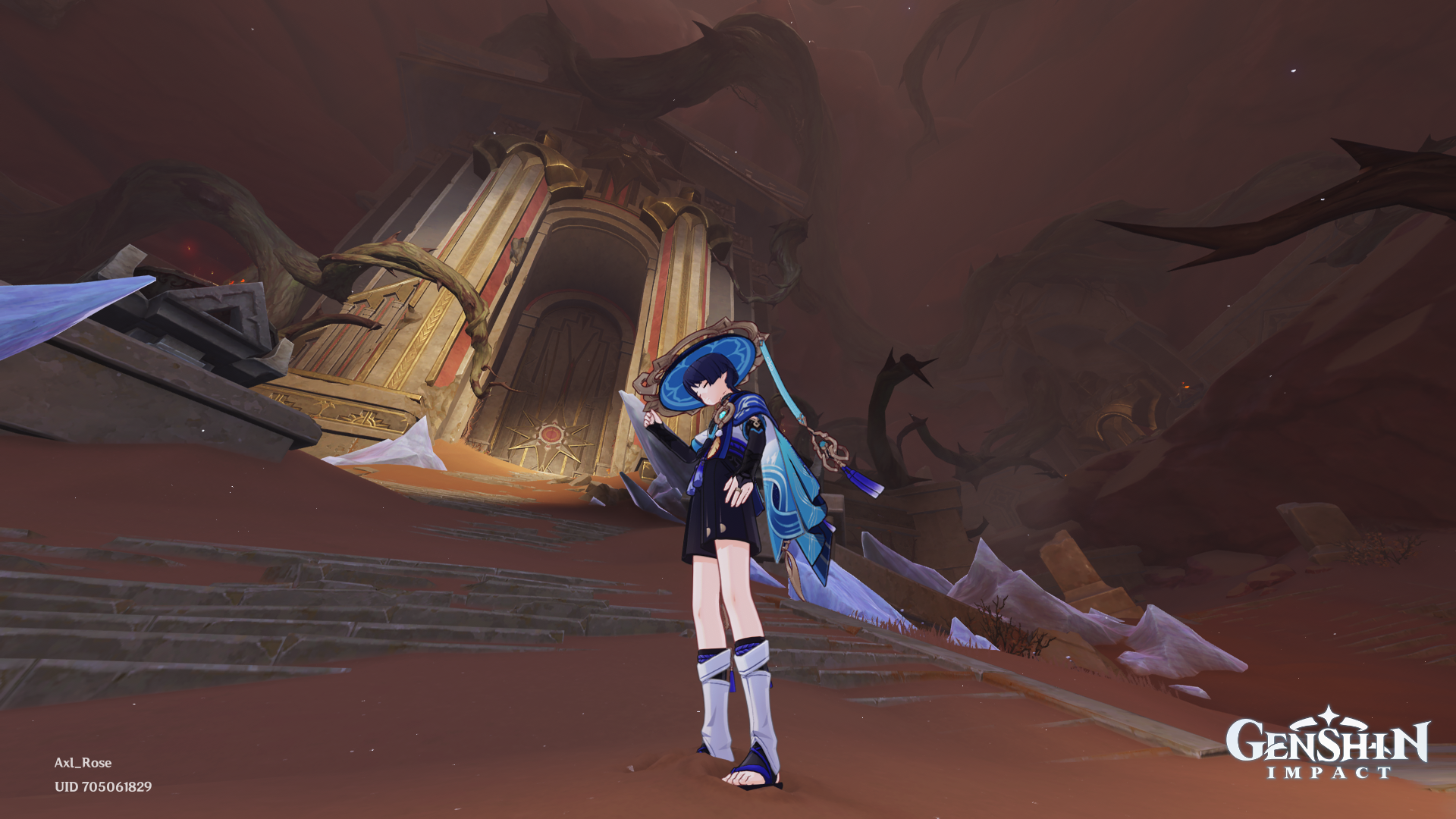 Ser imperfecto, nada más nacer mi creadora me desechó. Cometí el error de llorar de alegría, y lo que ella buscaba crear una máquina sin sentimientos. Algunos dicen que le recordé demasiado a su hermana fallecida durante la guerra. Ella no quisó destruirme, pero me abandonó. Me desactivó y encerró en el pabellón Shakkei. Desde entonces, fui vagando por el mundo. Mi vida se convirtió en una sucesión de desgracias. Sufrí lo que creía fervientemente ser traiciones que me cambiaron drásticamente, haciéndome odiar a la humanidad y a los dioses. Pertenecí a los Once Heraldos, una gran organización conducida por los fatui y liderada por Tsaritsa. Ellos me dieron lo que tanto ansiaba. La oportunidad de conseguir una gnosis y ser un dios. Sabía que así podría activar el "Dios Mecánico", pero fracasé estrepitosamente. Me volví a sentir solo, abandonado, como las puertas que ven, una vez llevaban a una nación, Khaenri'ah, sí, aquella que fue destruida por Celestia 500 años atrás. Osaron desobedecer y pagaron un precio muy alto. Por órdenes de la Arconte dendro, ayudé al viajero. Me envió al Irminsul en busca de información de la hermana del viajero, pero lo había preparado todo para que descubriera que lo que yo había considerado como traiciones, era producto de la mente manipuladora de "Il Dottore". No por nada es la arconte de la sabiduría. Estallé en rabia. Todo lo que llevaba tanto tiempo creyendo resultó ser mentira y me sentí culpable por todas las muertes que ocasioné. Quise cambiar el pasado modificando el Irminsul, pero todo el mal que provoqué ya era irreversible. Aun así, me fue concedida una oportunidad. Aquella pequeña diosa vio algo bueno en mí y quiso creer. Al verme argumentando sobre la sociedad de Inazuma, me apuntó a la Akademiya con el nombre de Don Sombrero. Me dio lo que siempre busqué. El apoyo, el cariño y respeto que me merecía. Kabukimono, Kunikuzushi, Scaramouche... He tenido muchos nombres. Pero al fin me siento en paz conmigo mismo, aceptando y perdonando a mi yo del pasado. Ahora miro estas puertas, con la esperanza de que haya justicia para los sobrevivientes y que encuentren toda la paz que merecen.
