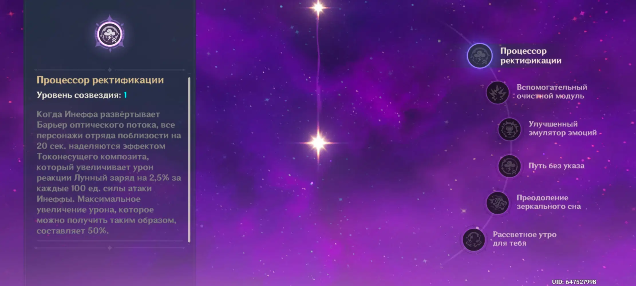Сигнатурка даёт дополнительную силу атаки Инеффе и, самое главное, увеличивает урон «Лунного заряда» на целых 40%! Путём простой математики понимаем, что итоговая прибавка составляет: 50% (С1) + 40% (сигнатурка) + 14% (пассивка) = 104%.