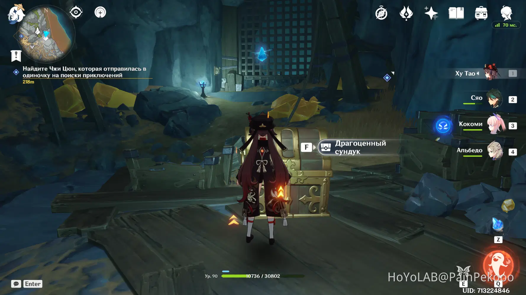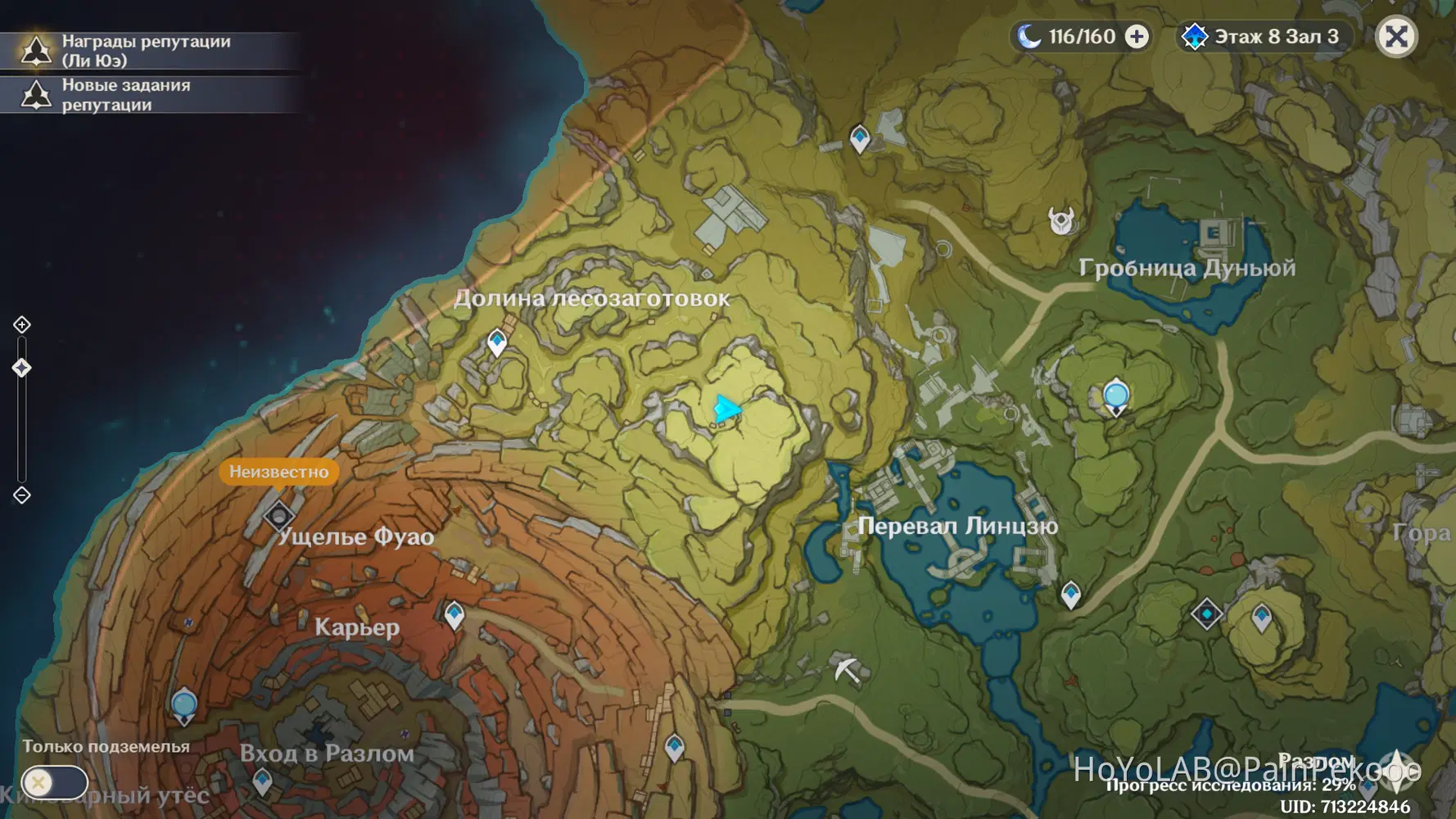 Собрав карту отправляемся на поверхность в лагерь похитителей сокровищ в область между ущельем Тяньгун и Глазурным утесом. Побеждаем врагов и поджигаем Пиро навыком сено и ждем когда оно сгорит. Попадаем в лагерь, забираем драгоценный и богатый сундуки и ачивку "Логово воров".