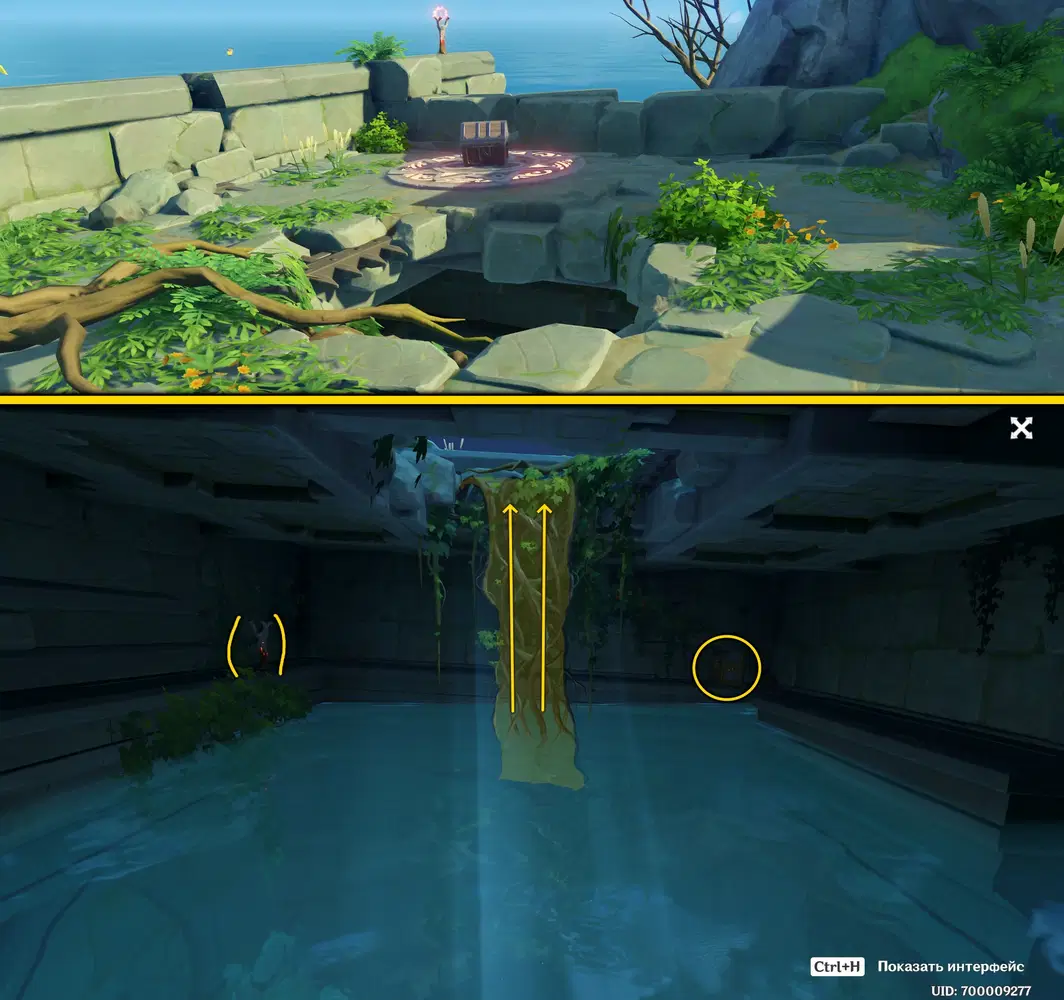 После того как комната наполнится водой зажгите четвертый факел, откройте роскошный сундук и поднимайте вверх по корням, чтобы собрать сундук и завершить головоломку.