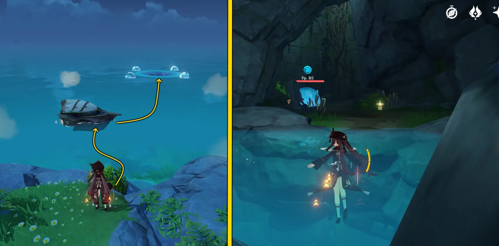 Теперь залезайте в Плотву и плывите в водоворот. Мы попадем в тайное место под остров.