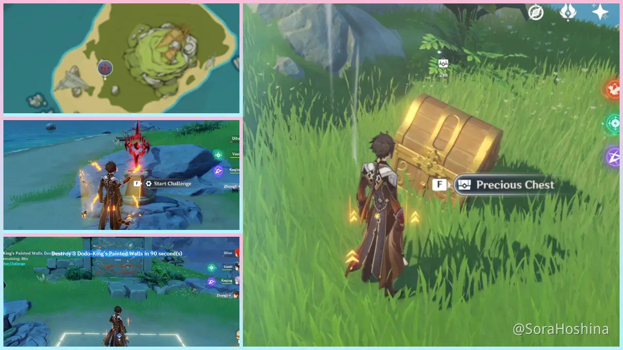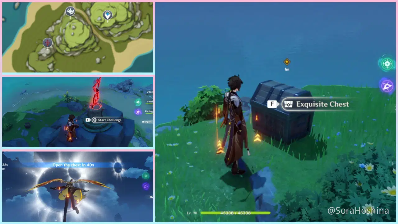Caution: Before starting the challenge, make sure to kill all monsters near the area - a group of hilichurls - or they will disturb you during the challenge making you fail.