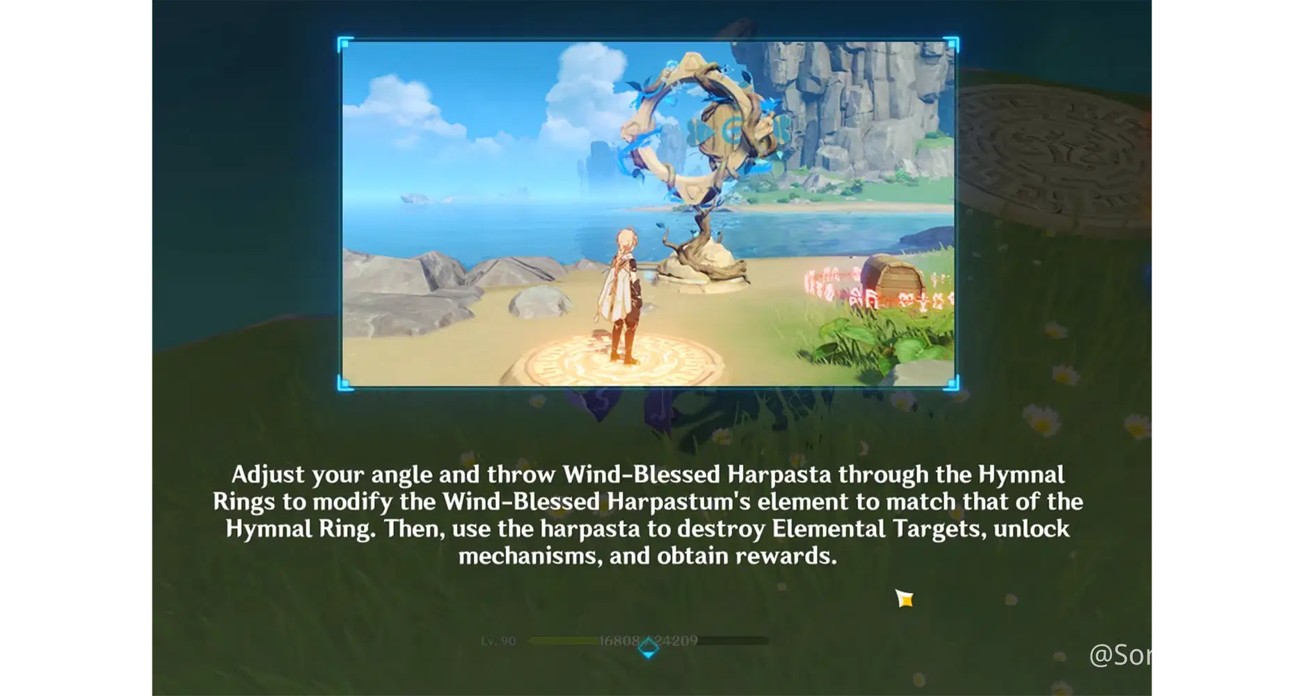 4. Use your light shield [Normal ATK] to return the Wind-Blessed Harpastum. Once you accumulate a certain number of hit, the Painted Wall will be destroyed and you can obtain the rewards.