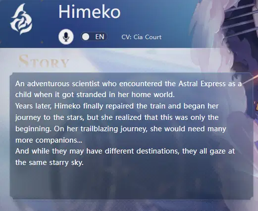 When all enemies are inflicted with Break, immediately unleash a follow-up attack that deals 50 percent of Himeko's ATK as Fire DMG to all enemies. This effect can be triggered again after Himeko has taken action 2 time(s) since this follow-up attack and when all enemies are inflicted with Break.