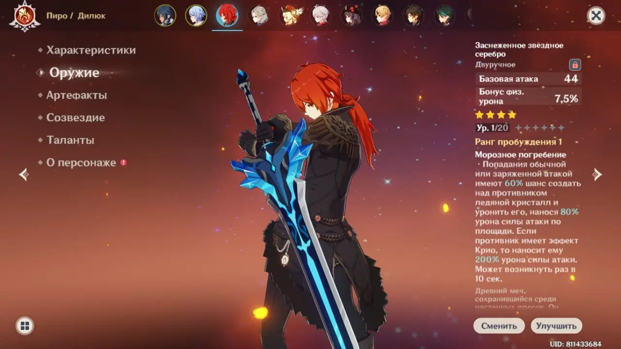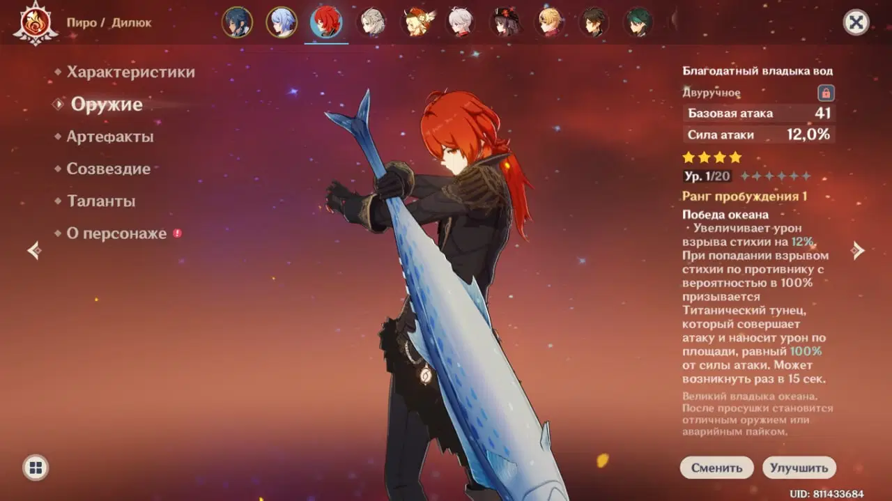 Нафармити важко, але всі фанати гри від реакцій точно не пожалкують. Збільшує урон від танення та пару, що в пачку з Сін Цю або ж Кейєю стане топовим варіантом.