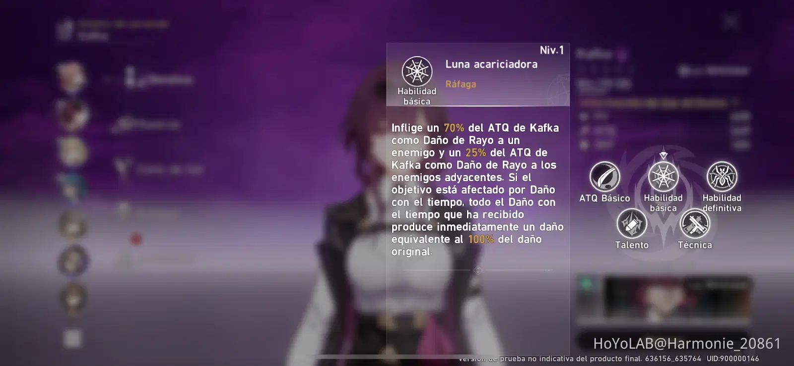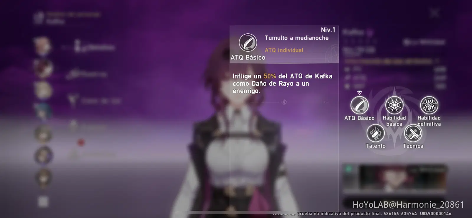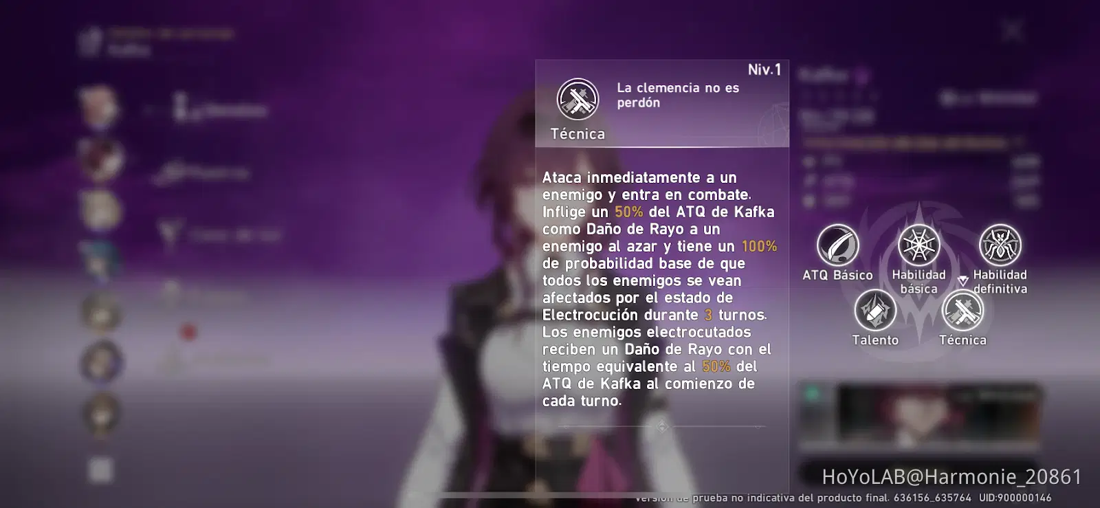 Niveau 1: Inflige 50% de l’attaque de Kafka comme dégâts électriques à un ennemi.
