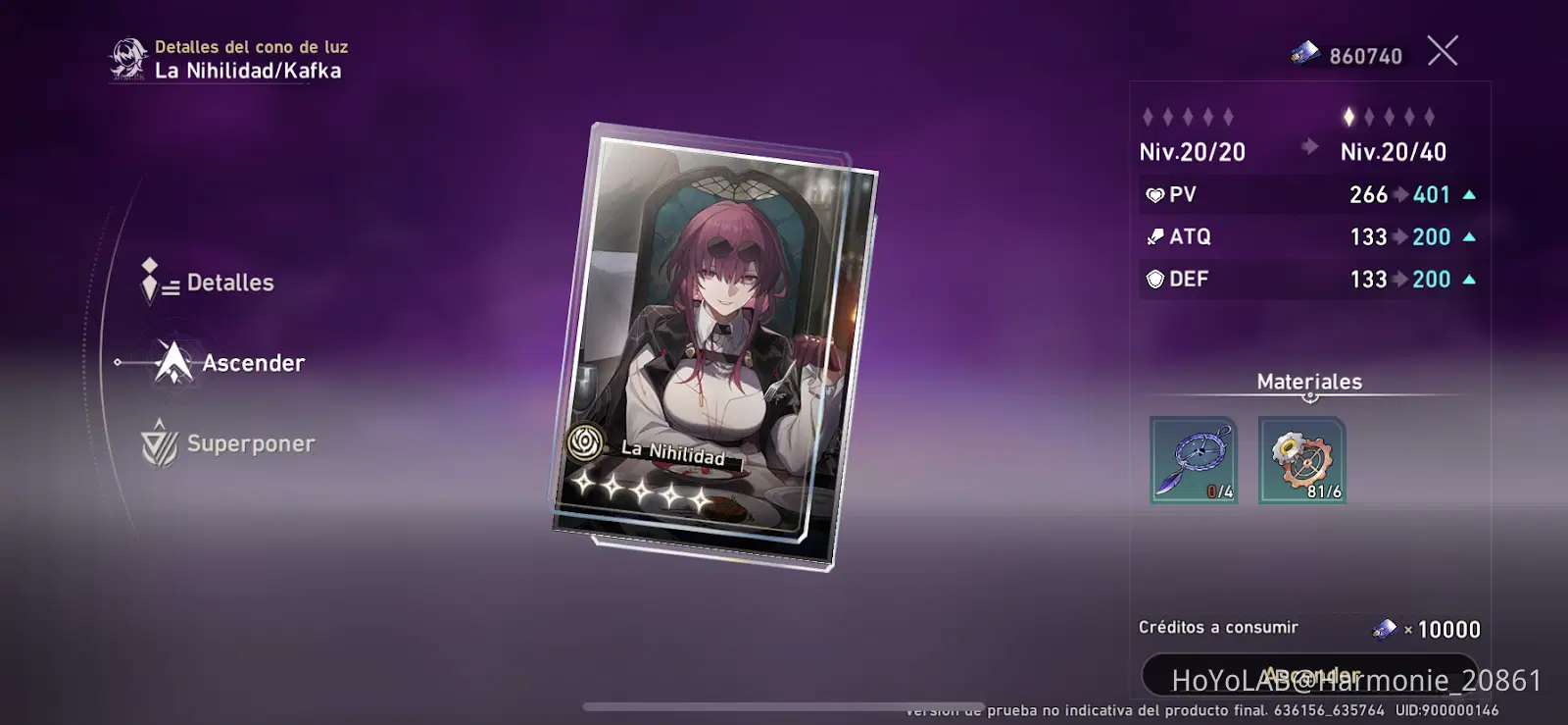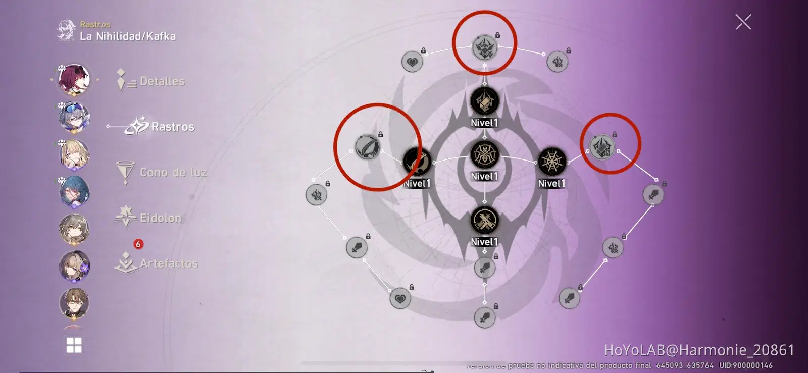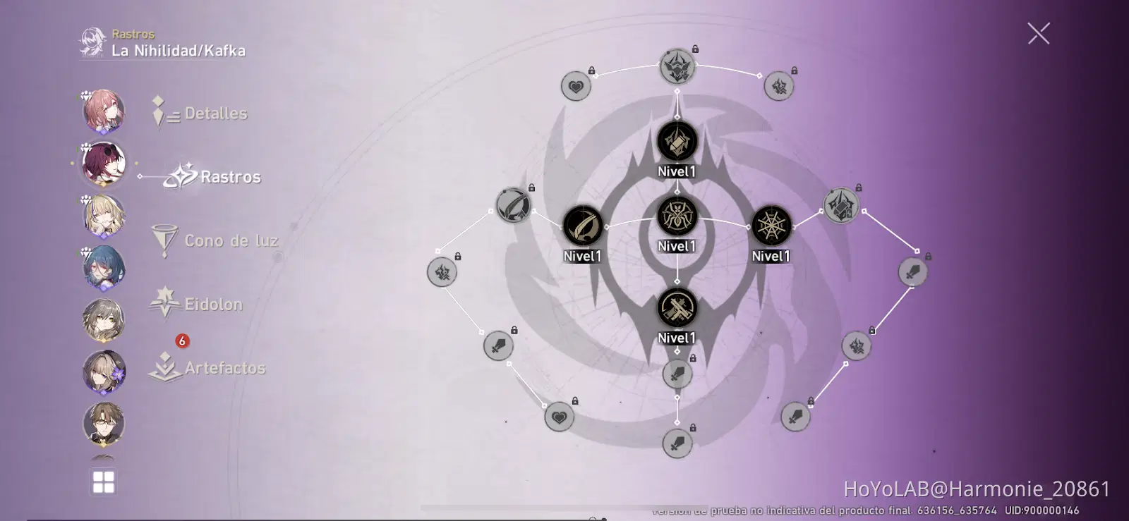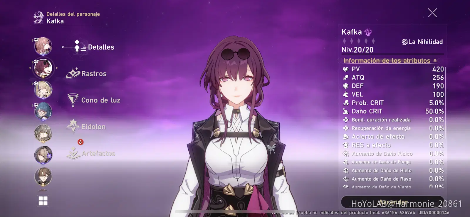 ➣ Ces stats là ne bougeront pas en augmentant le niveau de Kafka. Il faudra l’équiper avec des artefacts ayant les stats désirées pour les augmenter ou en débloquant des bonus d’attributs.