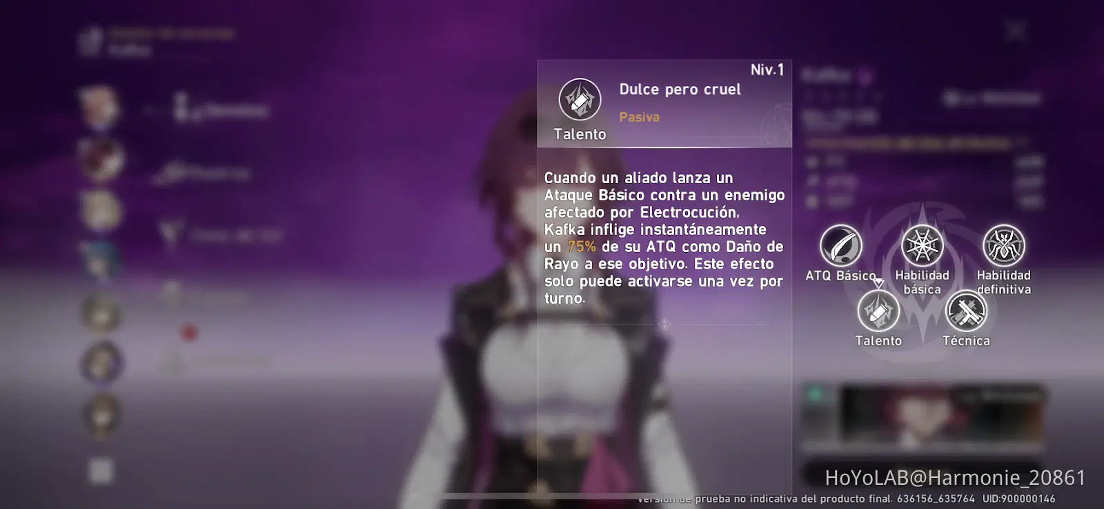 ➣ Le talent de Kafka est un passif qui lui permet d’infliger des dégâts supplémentaires si l’ennemi est électrocuté quand un allié fait une attaque basique.