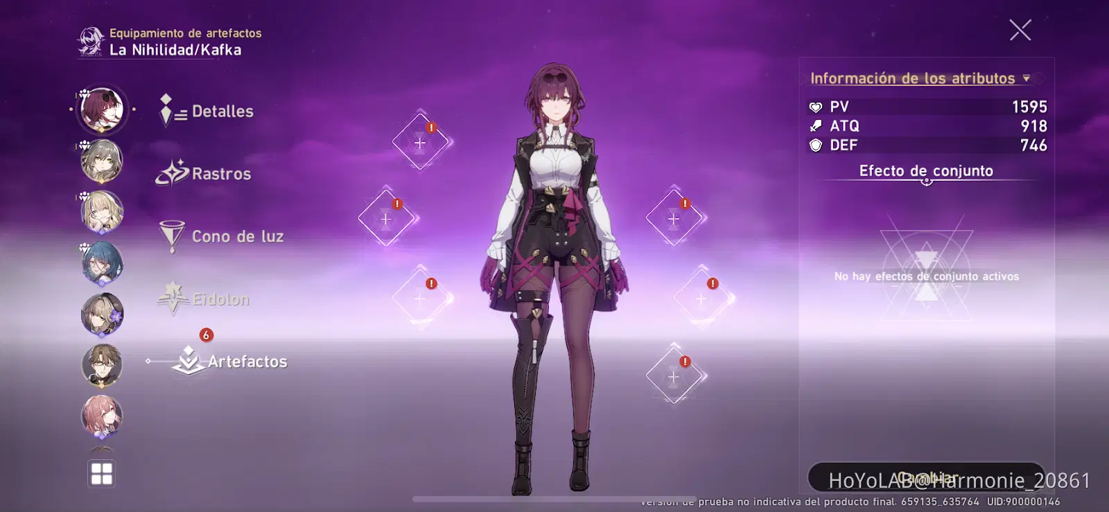 Comme pour chaque personnage, Kafka aura 6 emplacements pour 6 artéfacts.