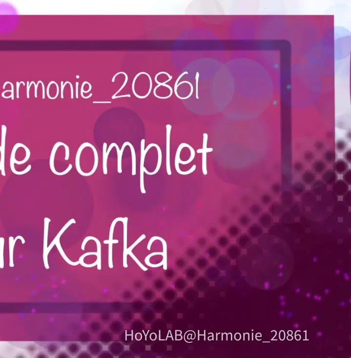 Ohayo ~! Aujourd’hui je vais vous présenter le personnage Kafka en détails de la beta Honkai Star Rail CBT2. Ce guide sera mis à jour si je remarque que les set d’artéfact ne sont pas les plus adaptés avec Kafka sur cette beta ou autre erreur de ma part. Veuillez noter que c’est la CBT2 (close beta test 2) de Honkai Star Rail, ce ne sont pas les stats/skill/pourcentage de dégâts/compétences officiels! Il pourrait y avoir des changements majeurs dans de futures beta ainsi que la version officielle du jeu. Je ferai un post si des changements sont remarqués sur de futures beta ainsi que je mettrai sur ce post les changements qu'il ya eu.