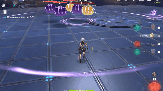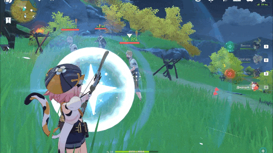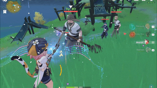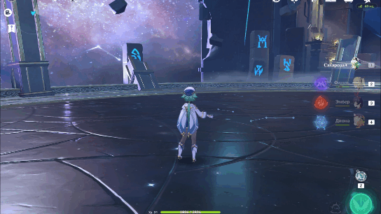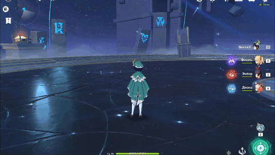 Хотелось бы отметить интересную особенность Джин. Взрыв стихий Джин создаёт поле, любой персонаж, находящийся в этом поле, получает анемо статус, если это скомбинировать со способностями, которые поддерживают на персонаже статус, то получится периодическое рассеивание. Это может пригодится против чтеца и вестника бездны, для быстрого снятия их щитов.