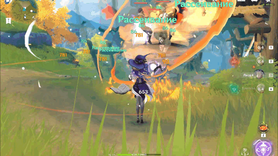 Итак, что же такое рассеивание. Рассеивание – это реакция взаимодействия элемента анемо с элементами пиро, гидро, крио и электро. С гео анемо взаимодействовать не может. Реакция рассеивания распространяет рассеянный элемент на противников по области. В случае с пиро, крио и электро наносится урон по области рассеянным элементом и накладывается соответствующий статус на ближайших противников.