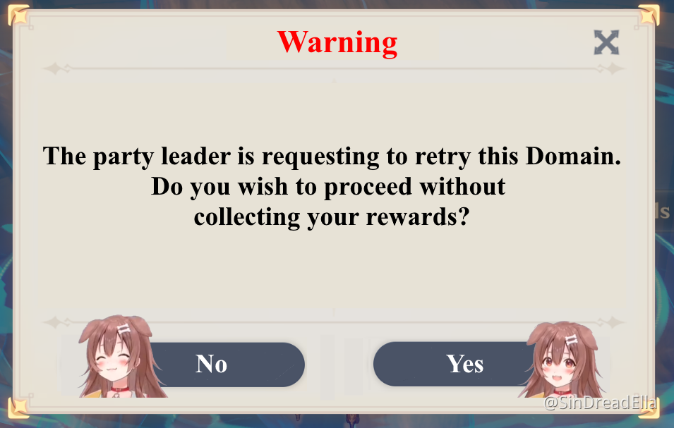 -All drops as soon as you spend resin will be auto collected thus avoiding any possible glitches. If the host reruns the Domain but you still haven't spent your resin to collect the rewards yet, you will be prompted with a message like this.