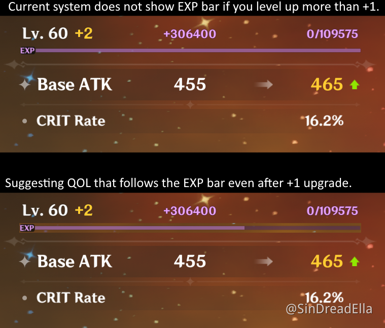 Show the EXP bar progression after +1 lvl upgrade
